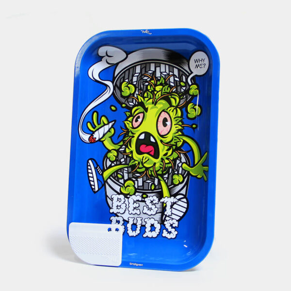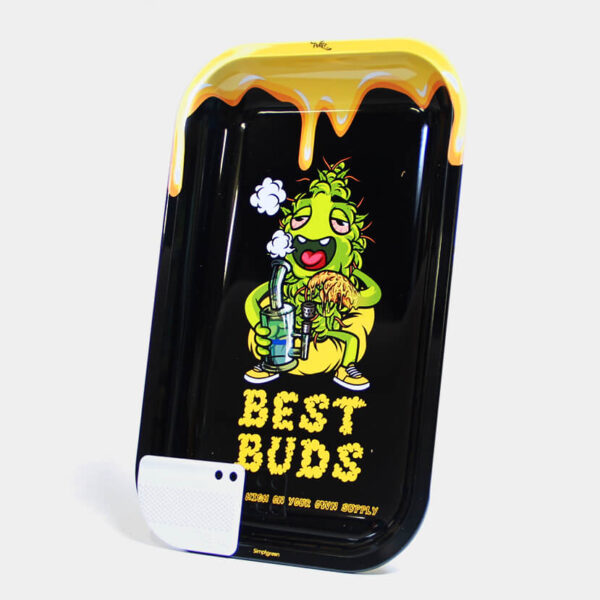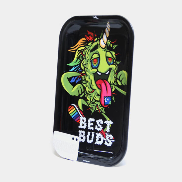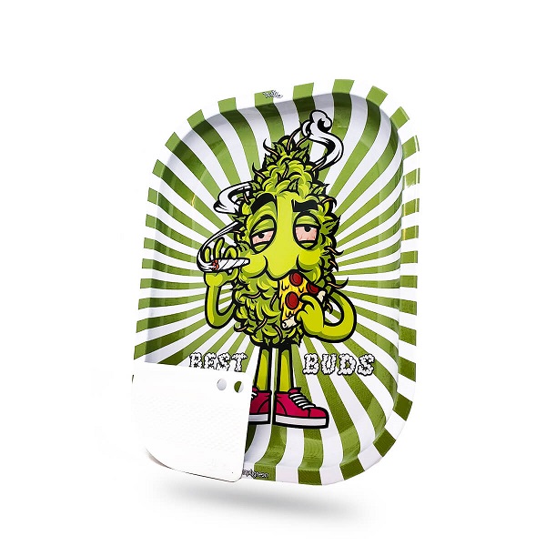 Best Buds Thin Metal Box Rolling Tray with Storage Kosher Kush