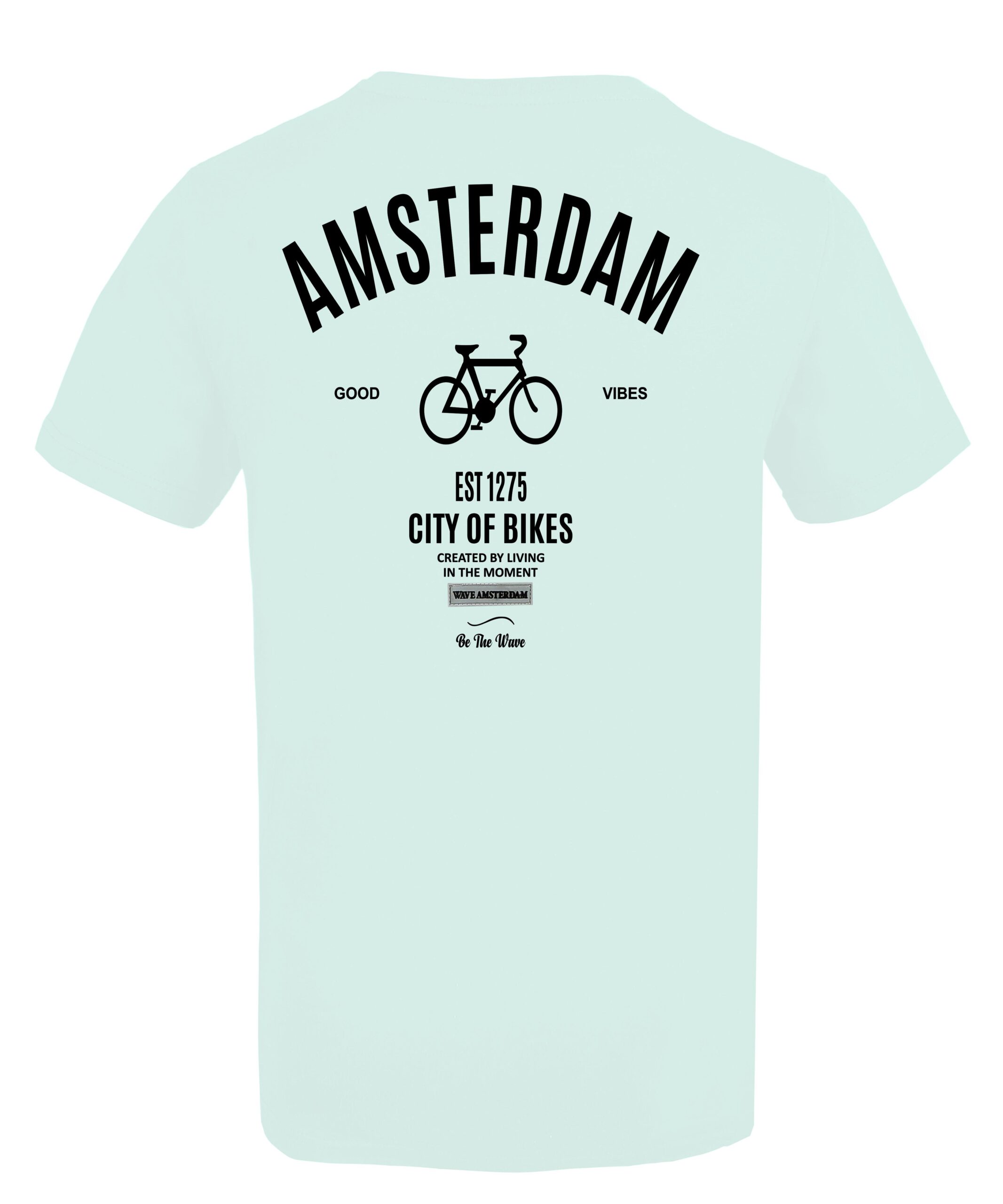Step out in style with this fresh mint green graphic tee. The back features a striking Gothic “Amsterdam” arch paired with the iconic vertical triple-X (XXX) design. Detailed with “City of Freedom” and “Good Vibes” slogans, this shirt embodies the urban spirit of the Netherlands. Crafted from premium, breathable cotton with a clean “Be The Wave” signature finish, it’s the perfect blend of comfort and culture.