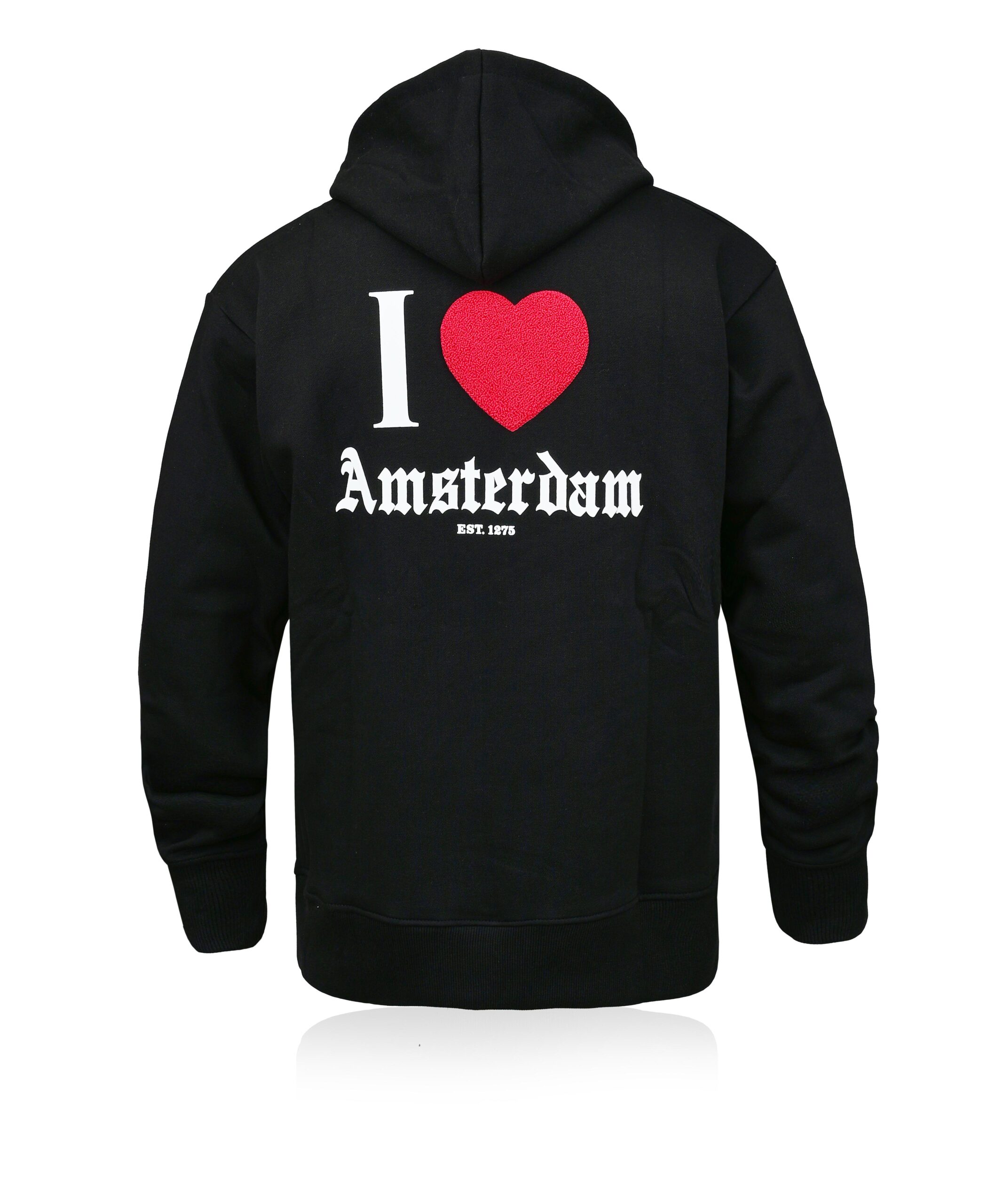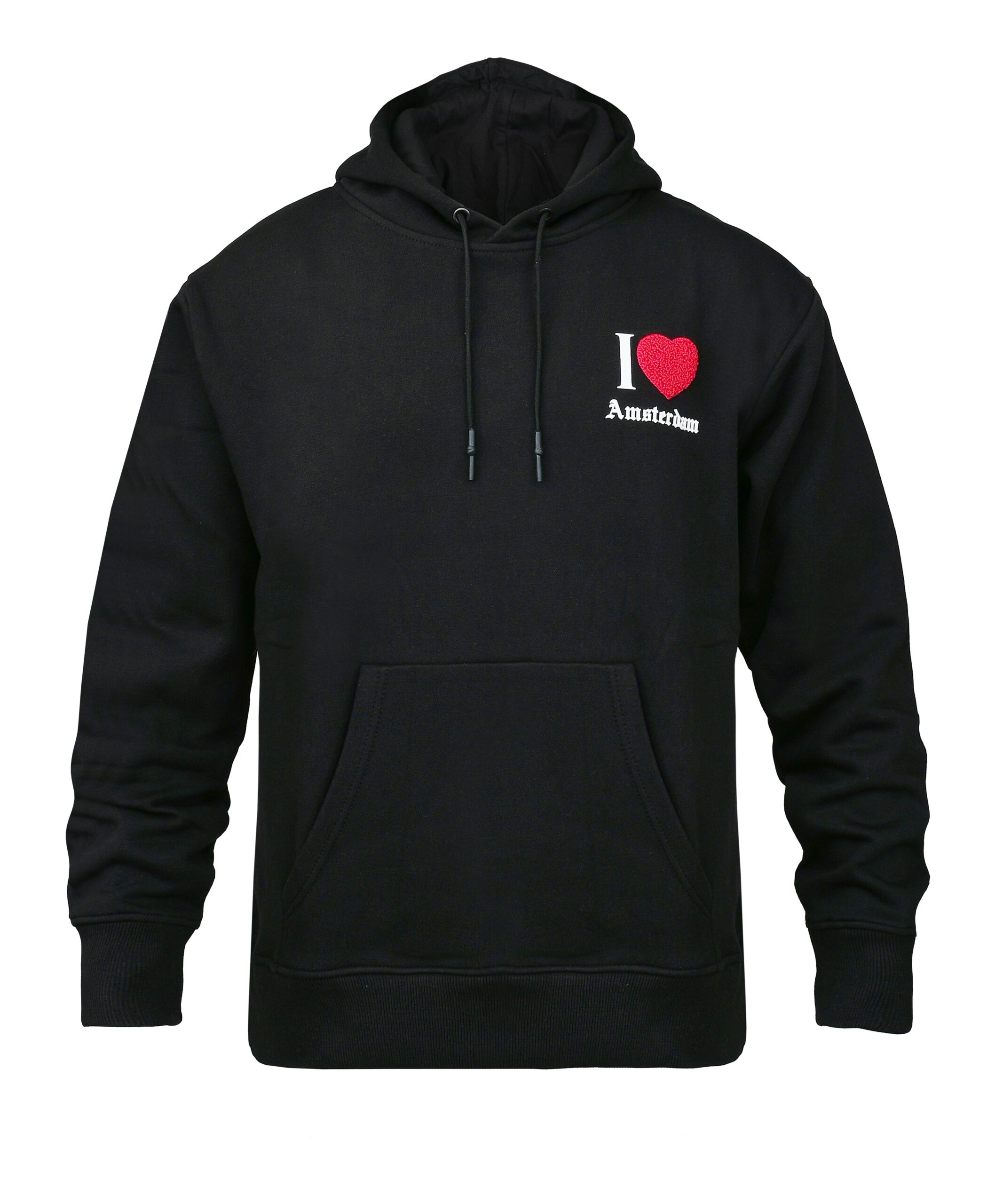 A timeless tribute to the city of canals. This premium black hoodie features a vibrant red textured heart and “I Amsterdam” Gothic embroidery on the chest. Designed with a spacious kangaroo pocket, adjustable drawstrings, and a soft fleece interior, it combines iconic tourist style with high-end streetwear comfort.